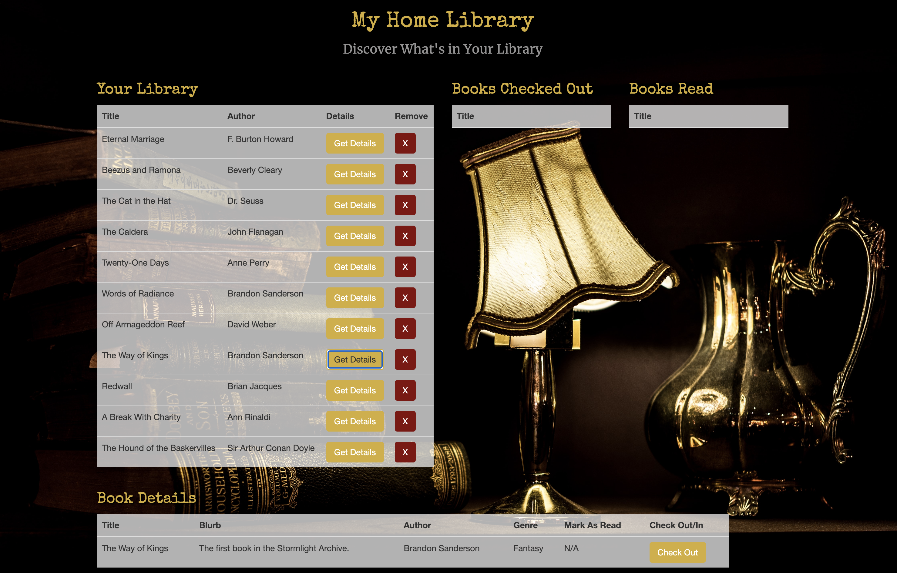 For this project I was required to use Node.js. I made a website to help keep track of the books in a home library. It tracks what books are being read and what books you’ve marked as read.